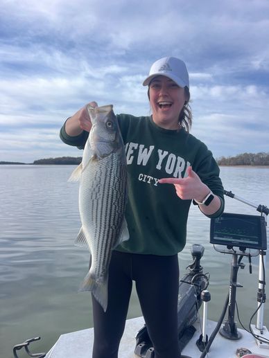 Saturday February 28th The big fish showed up today and were hungry! My group caught a nice limit of Hybrids and several White Bass. This is my favorite time to troll and cover some water and you might catch a giant! I've got some days open and would love to have you out.